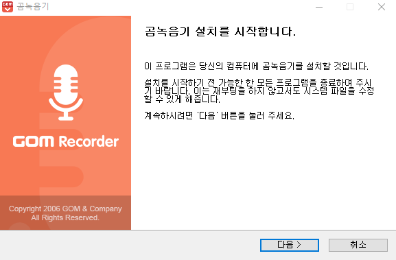 위에서 곰녹음기를 받으신 이후 아래와 같이 설치하십시오.