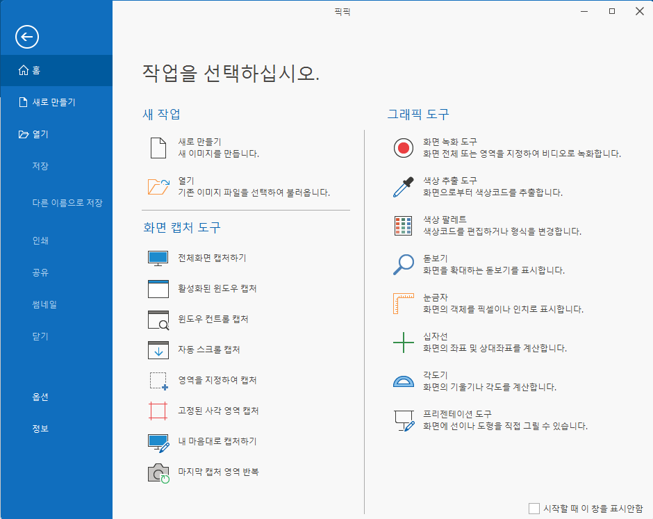 픽픽 프로그램은 강력한 화면 캡처, 녹화, 이미지 고급 편집과 화면 색상 추출 및 나만의 색상 관리, 이미지 크기 및 각도 계산, 화면 그리기 도구 등 모든 기능을 한 번에 사용할 수 있으며, 기업 및 단체 또는 개인을 포함한 모든에게 무료로 사용할 수 있습니다. 아래를 통해 픽픽 프로그램 이용과 기능에 대해 살펴보겠습니다.